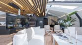 un salón de 76m2 que se abre al mar, un impresionante flybridge totalmente equipado hacen que este barco sea verdaderamente único.